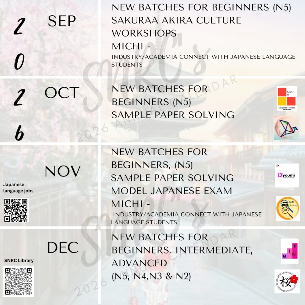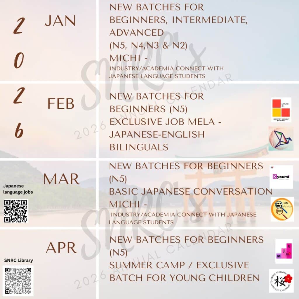 Whether you are starting from zero or preparing for N1 — SNRC has the right batch for you. All courses are JLPT-aligned and taught by experienced, in-Japan-trained senseis.